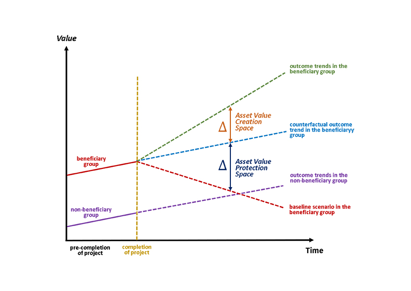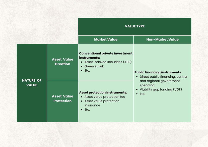 A key insight of the research is to view GSW through two complementary lenses: value creation and value protection. Value creation covers new land, public spaces, and economic activity that the project can unlock. Value protection focuses on safeguarding existing assets (homes, infrastructure, and livelihoods) against worsening coastal hazards. Building on and extending the Yoshino and Pontines (2015) model, we propose matching instruments to each segment of the project according to the nature and type of value at stake.